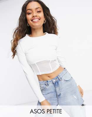 White long sleeve mesh crop top Clearance, ASOS DESIGN Petite long sleeve crop top Clearance