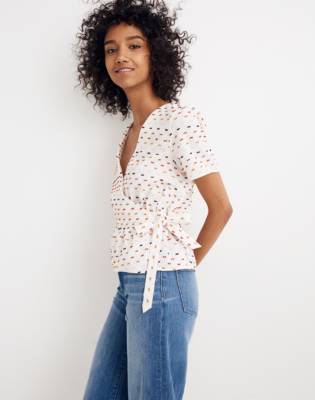 Madewell ruffle hem wrap top Clearance, Ruffle-Hem Wrap Top in Clipdot | Madewell Clearance