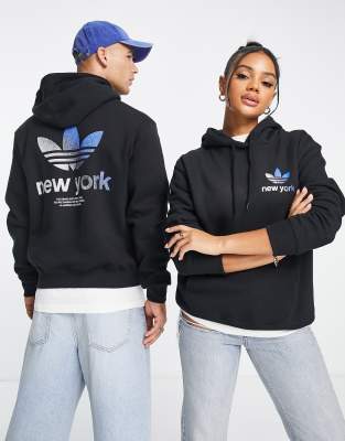 Adidas nyc hoodie Clearance, Adidas Originals City Trefoil New York Hoodie in Black with Back Print Clearance