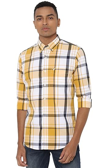 Yellow colour check shirt Clearance, Slim fit Casual Shirt at Amazon Clearance