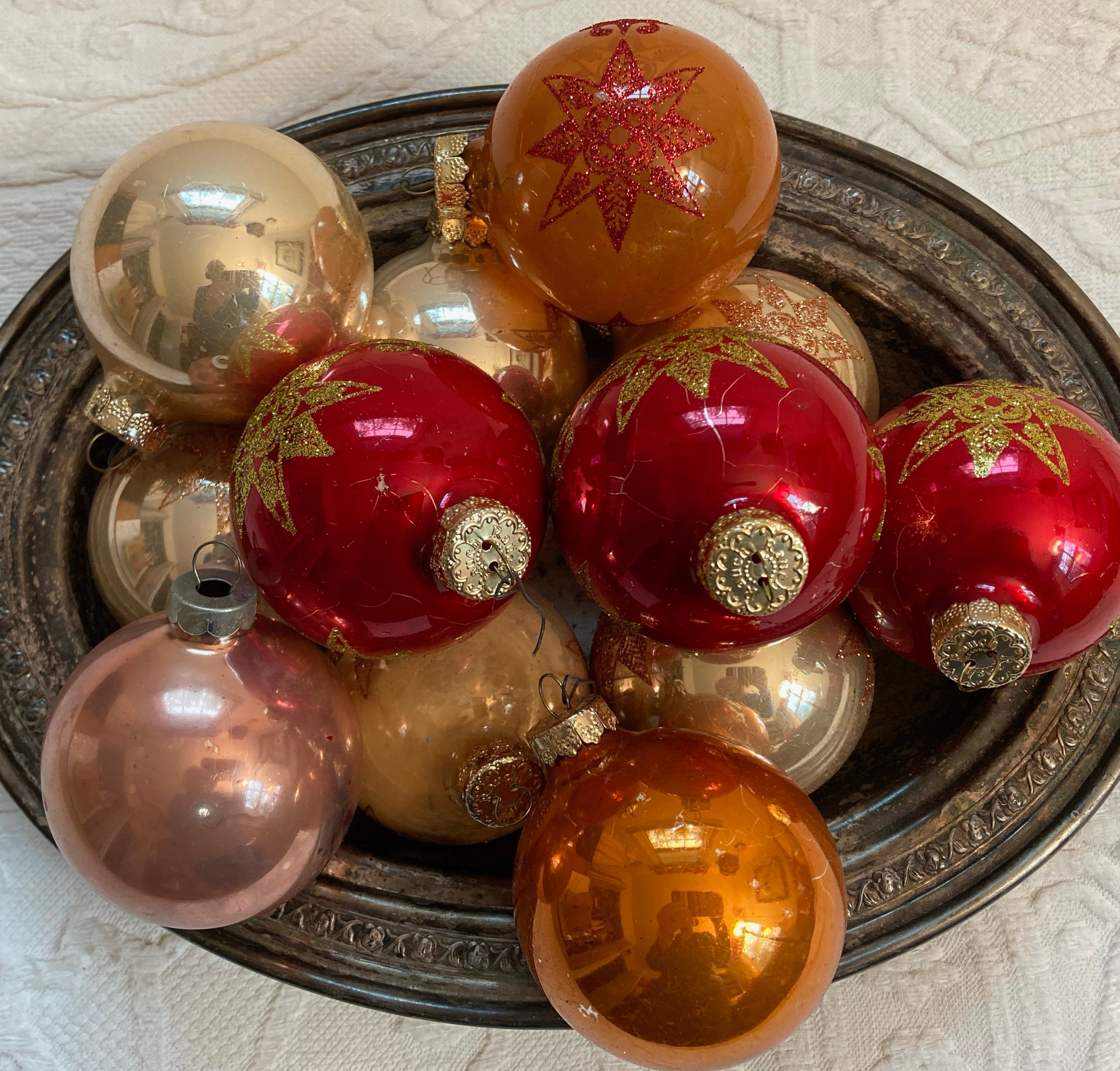 - Red and gold glass christmas ornaments sale