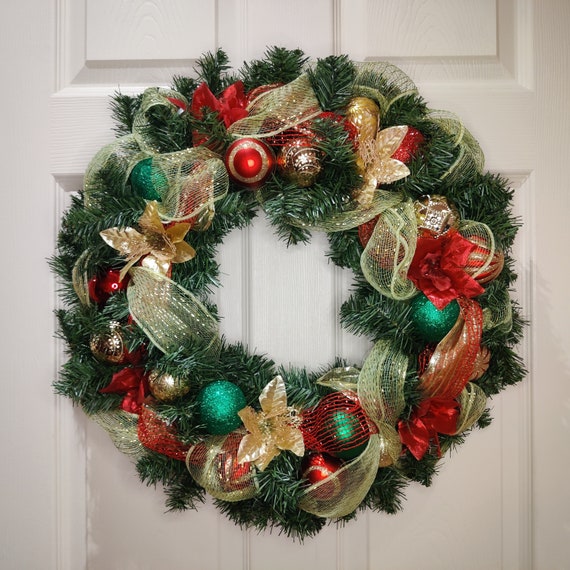 - Red green and gold christmas wreath sale online