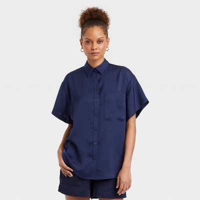 - Navy blue button down shirt women's sale
