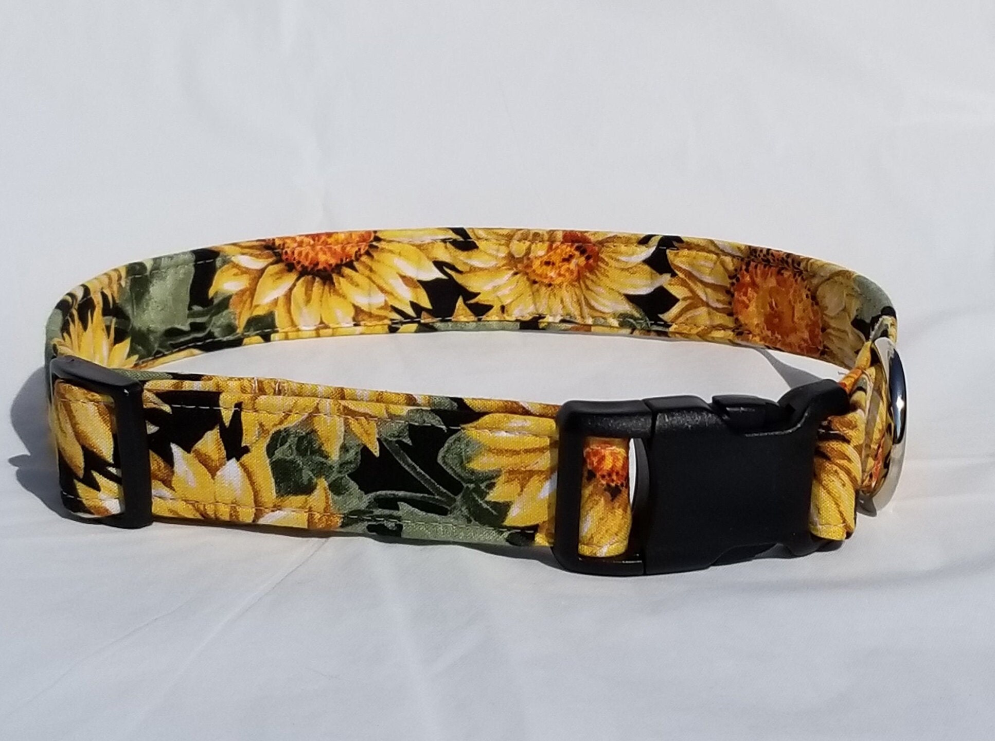 Handmade fabric dog collars Clearance, Sunflower fabric dog collars handmade Clearance