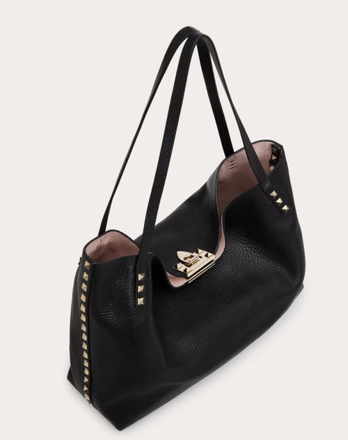 Medium rockstud grainy calfskin bag with contrasting lining Clearance, Medium Rockstud Grainy Calfskin Bag With Contrasting Lining for Woman in Black/rose Quartz | Valentino US Clearance