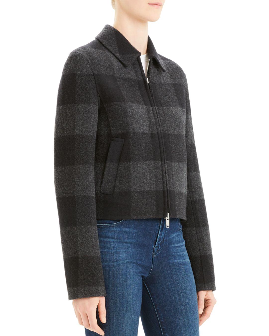 Theory buffalo plaid wool coat Clearance, Theory Wool Buffalo Plaid Zip Jacket in Clearance