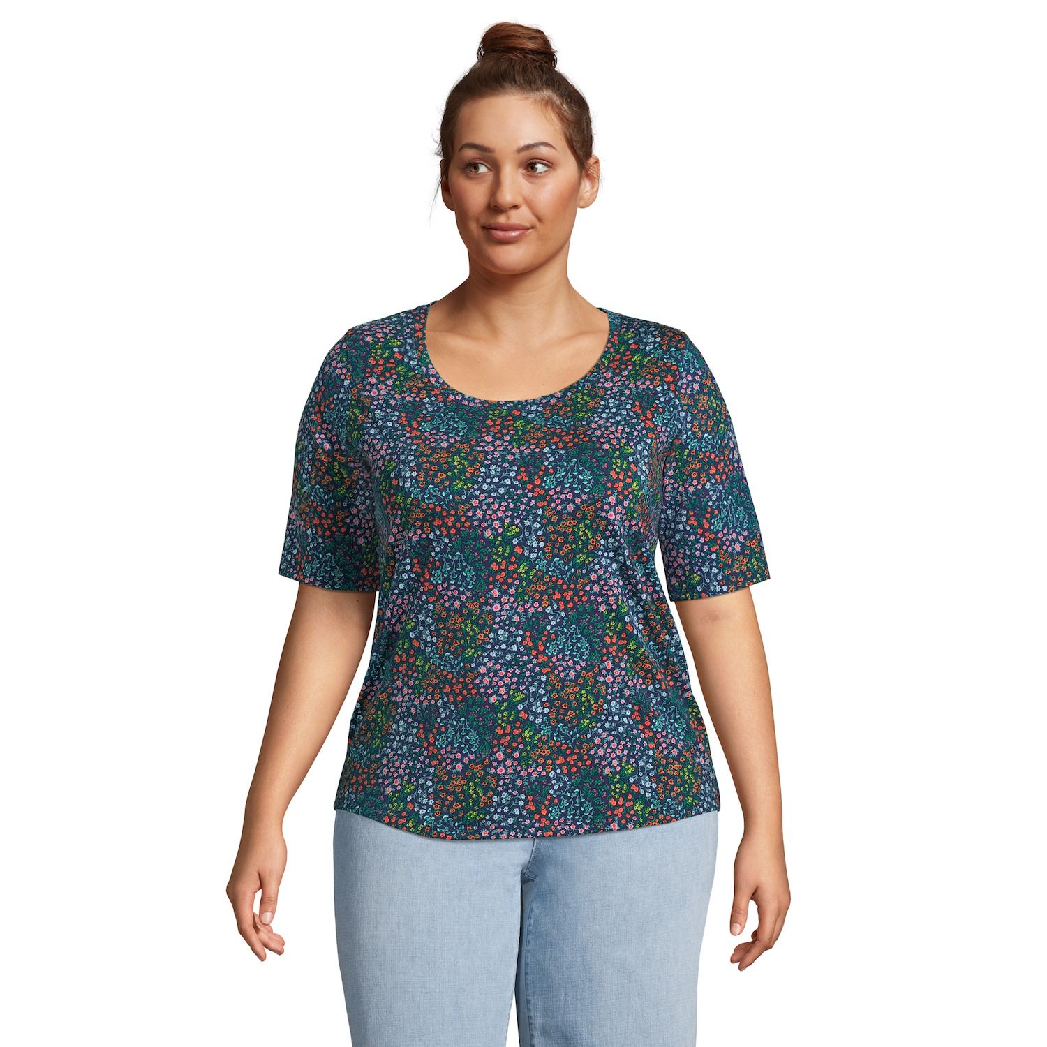Plus size elbow sleeve tee shirts Clearance, Elbow-Sleeve Supima Cotton Scoopneck Tee Clearance