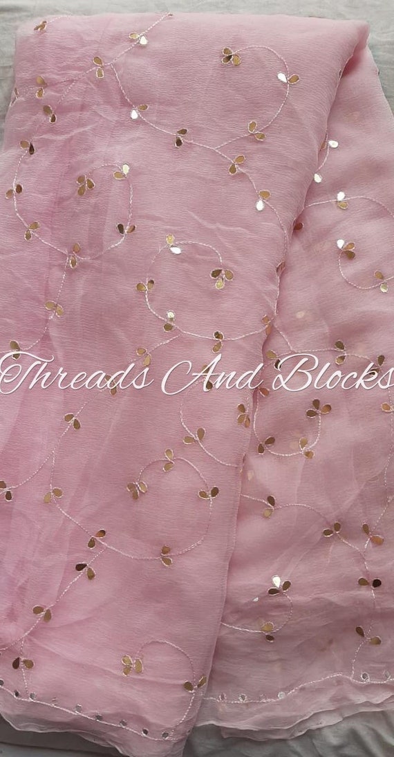 Chiffon work saree Clearance, Hand Embroidery Pitta work Peach Saree Clearance