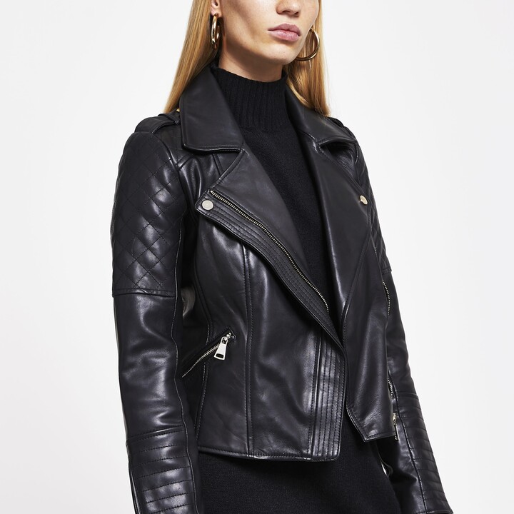 - Black leather quilted biker jacket river island sale