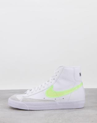 - Nike blazer mid 77 trainers in white and fluro green clearance