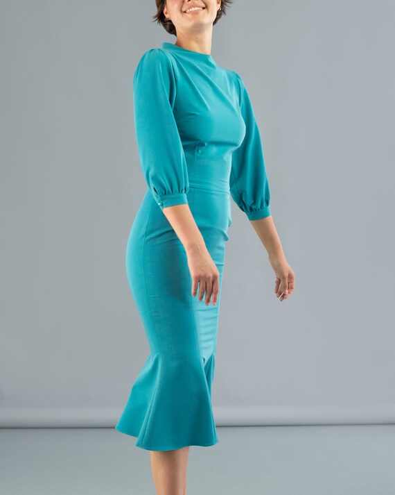 Elegantes kleid türkis Clearance, Meerjungfrau Kleid-Midi Kleid-Feines Stoffkleid-Gusset Rock-Reißverschlusskleid-Elegantes Kleid-Türkis Kleid-Luxusmode-Hochwertiger Stoff - Etsy.de Clearance