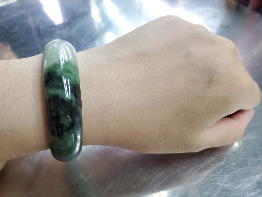 70mm jade bangle Clearance, Yingmart 51mm-70mm Thick Flat Green Jade Bangle Bracelets, Real Gemstone Bracelet, Vintage Clearance