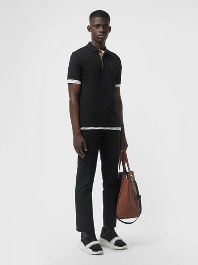 Burberry 80009131 Clearance, Burberry Check Placket Cotton Polo Shirt In Black | ModeSens Clearance