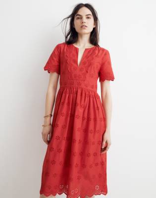 Madewell red eyelet dress Clearance, Scalloped Eyelet Midi Dress | Dress Clearance