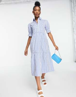 Asos blue and white dress Clearance, Influence tiered shirt dress in blue Clearance