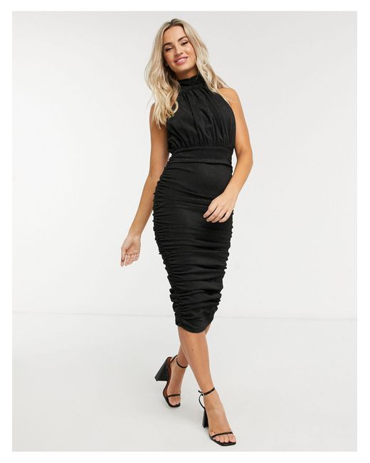 Ax paris black ruched dress Clearance, AX Paris Glitter Ruched High Neck Midi Clearance
