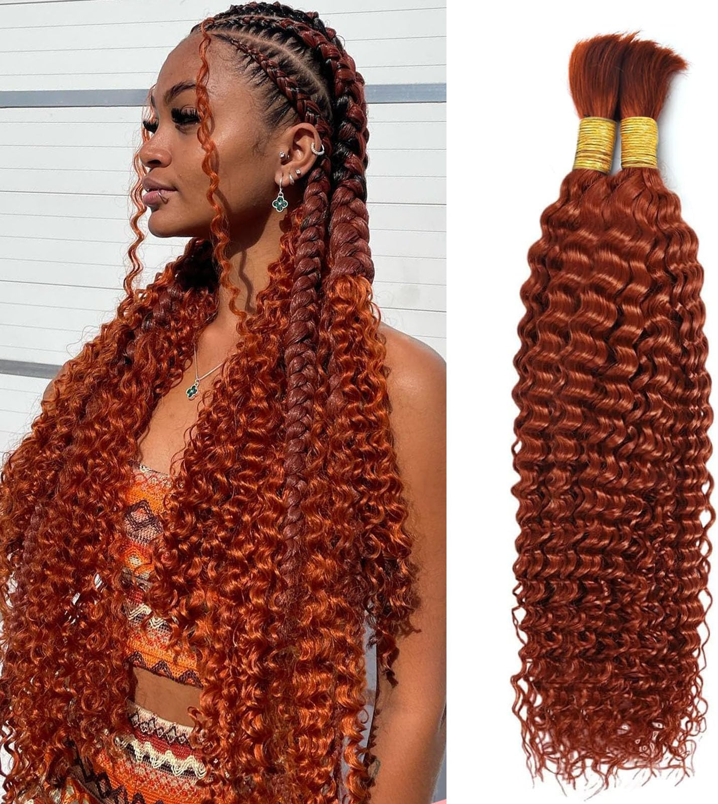 Pictures of human hair weaves Clearance, Dark Ginger Human Braiding Hair 100g 18 Inch Human Hair Braiding Hair Curly Boho Hair for Braiding Knotless 12A Deep Wave ... Clearance