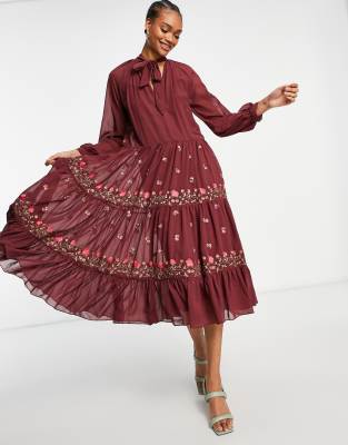 Maxi dress asos sale Clearance, ASOS DESIGN all over embroidered high Clearance