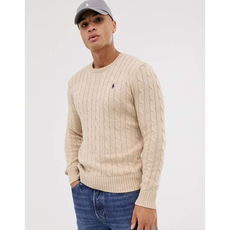 Ralph lauren cable knit jumper beige Clearance, Polo Ralph Lauren player logo cotton cable knit jumper in beige marl | ASOS Clearance