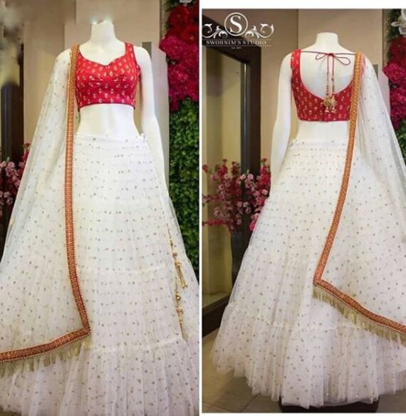 White lehenga skirt Clearance, Indian Designer White Lehenga Net Clearance