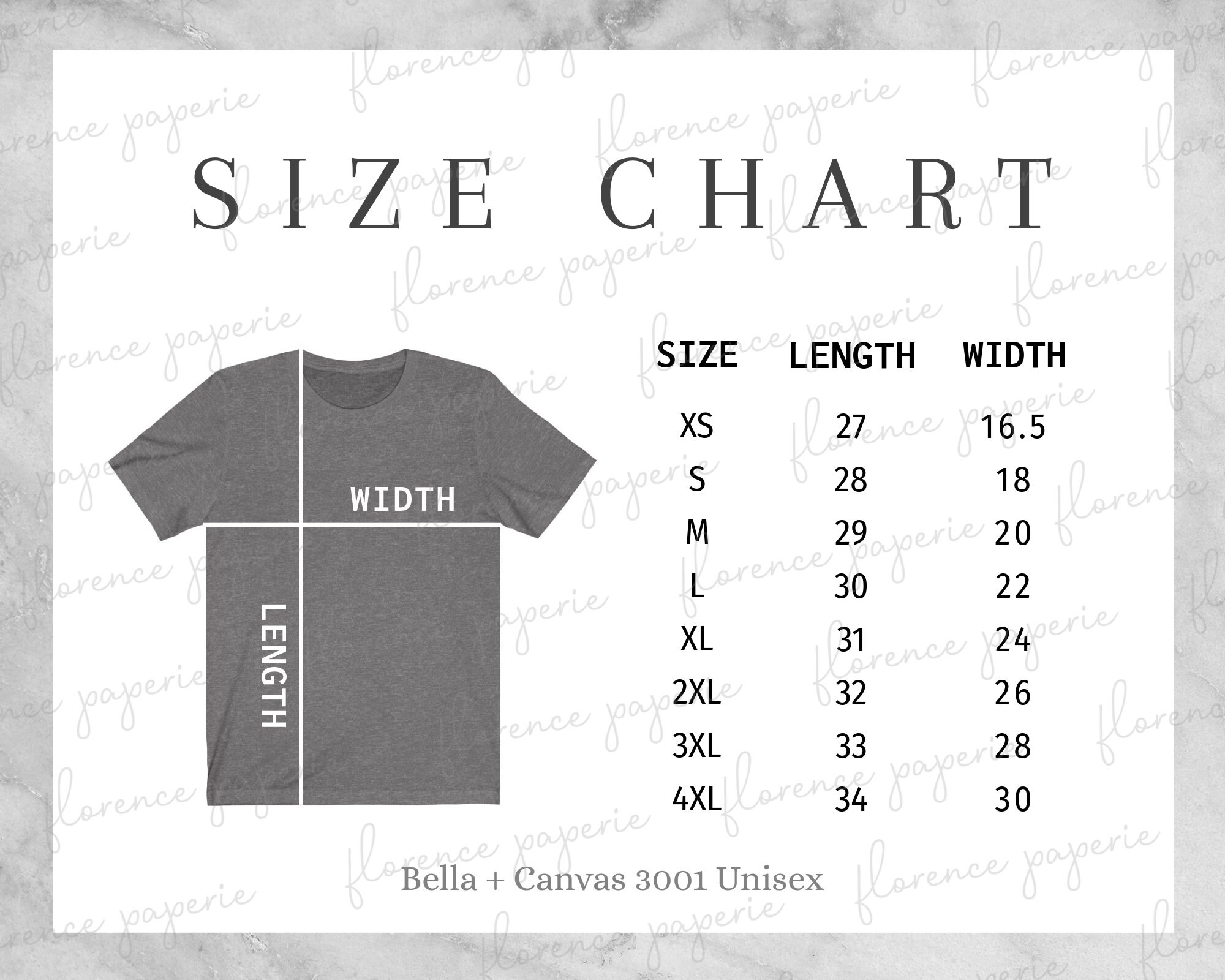 Bella t shirt size chart Clearance