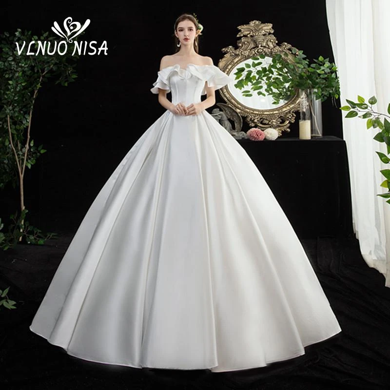 Fashion flare wedding dress Clearance, Hot Sale Korean Plain Boat Neck Clearance