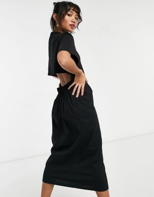 Kleid rücken cut out Clearance, ASOS DESIGN Petite – Oversize Midi-T-Shirt-Kleid mit Cut-out-Detail am Rücken in Schwarz Clearance