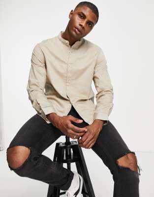 - Beige grandad collar shirt outlet