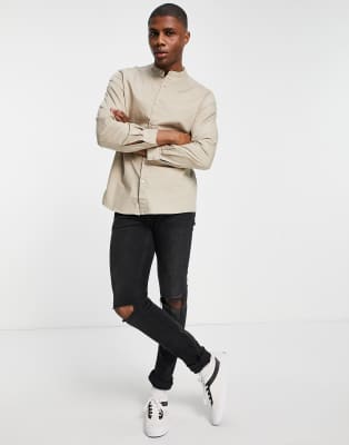 - Beige grandad collar shirt clearance