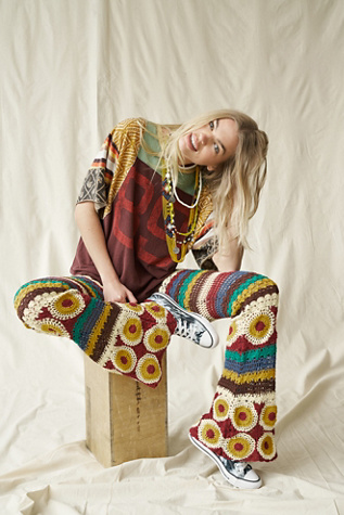 Crochet flare pants Clearance, Patchwork Crochet Square Print High Clearance
