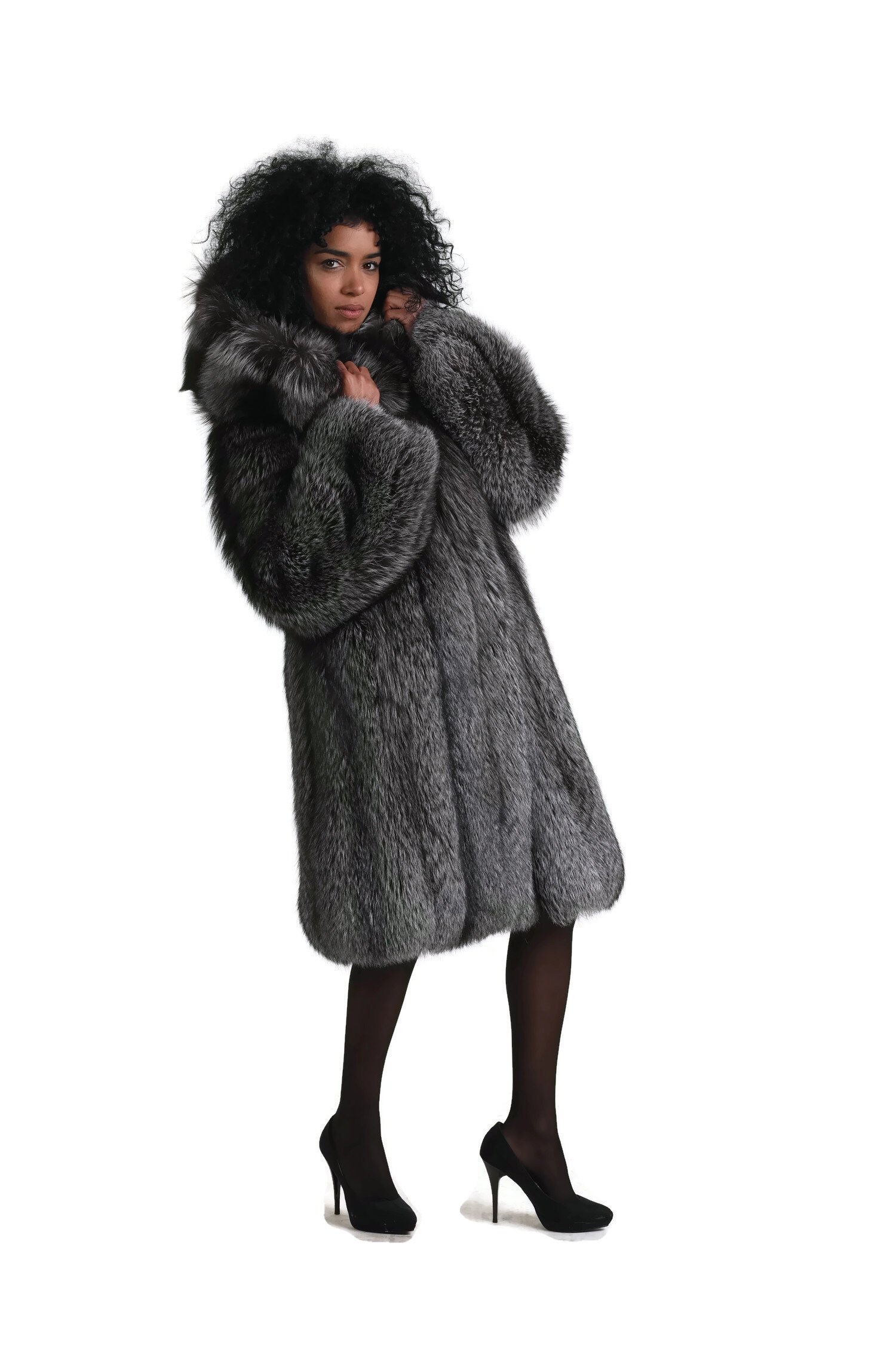Waist length fur coat Clearance, Multicolored Fox Fur Waist Length Clearance
