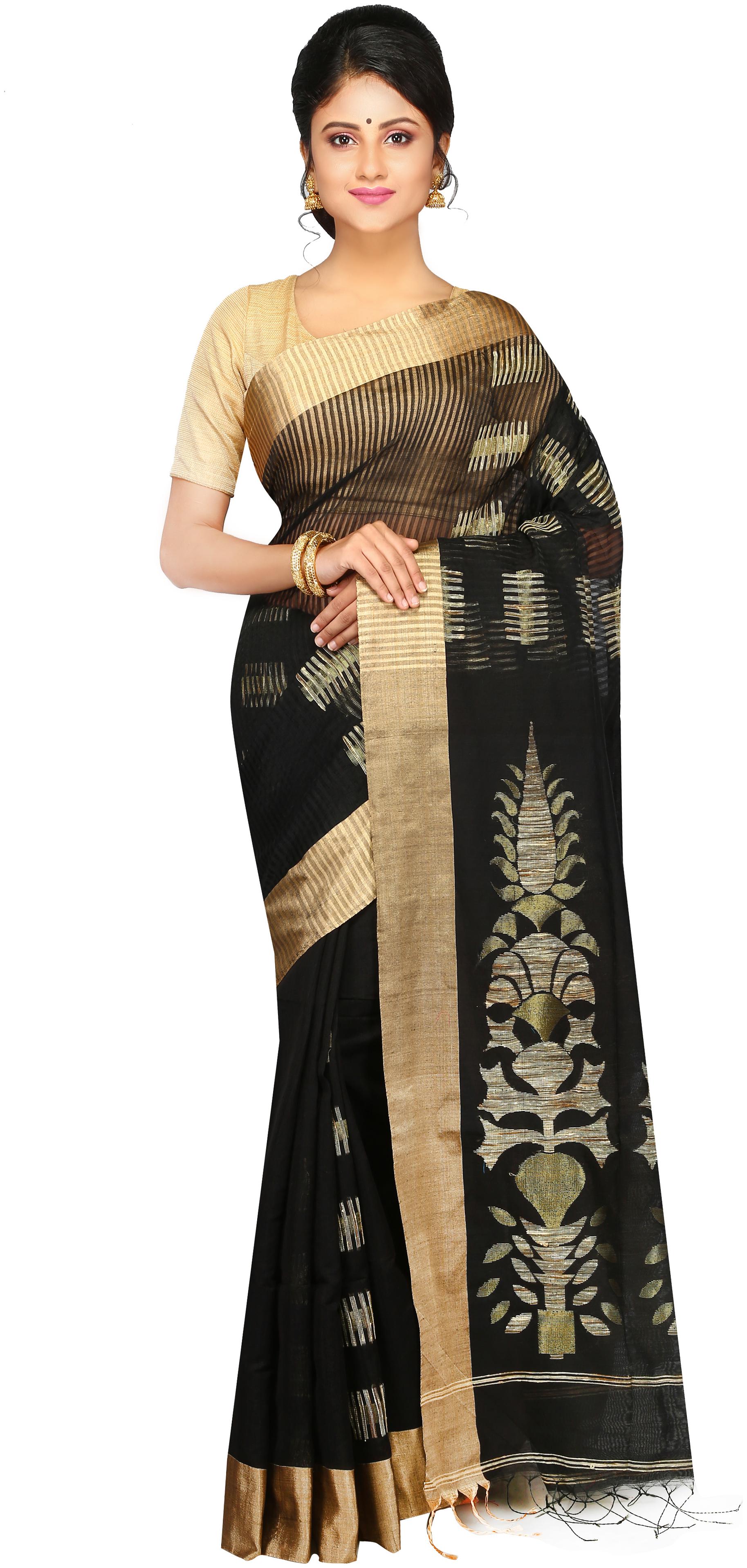 Pinkloom saree Clearance, Buy PinkLoom Beige & Blue Pure Cotton Woven Design Handloom Jamdani Sustainable Saree - Sarees Clearance