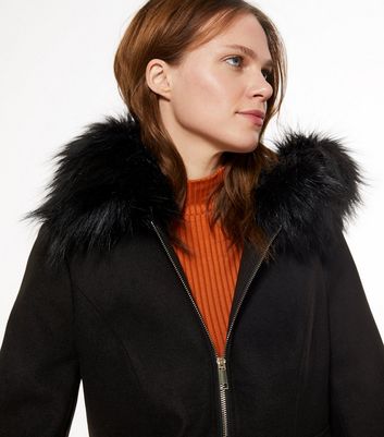 - Womens black faux fur hooded coat shop