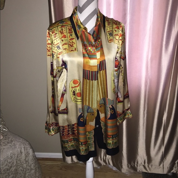 Egyptian silk shirt Clearance, 0 Silk Blouse Ancient Egyptian Scarabs Clearance
