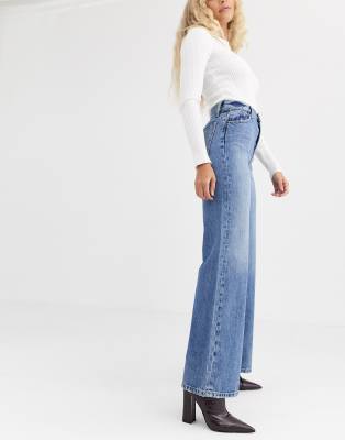 - Mid blue wide leg jeans clearance
