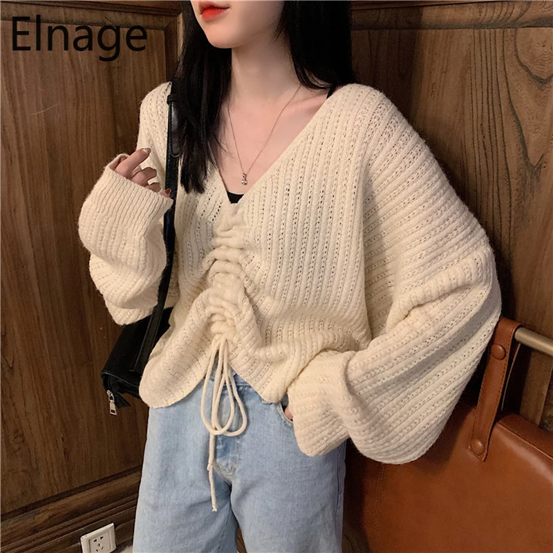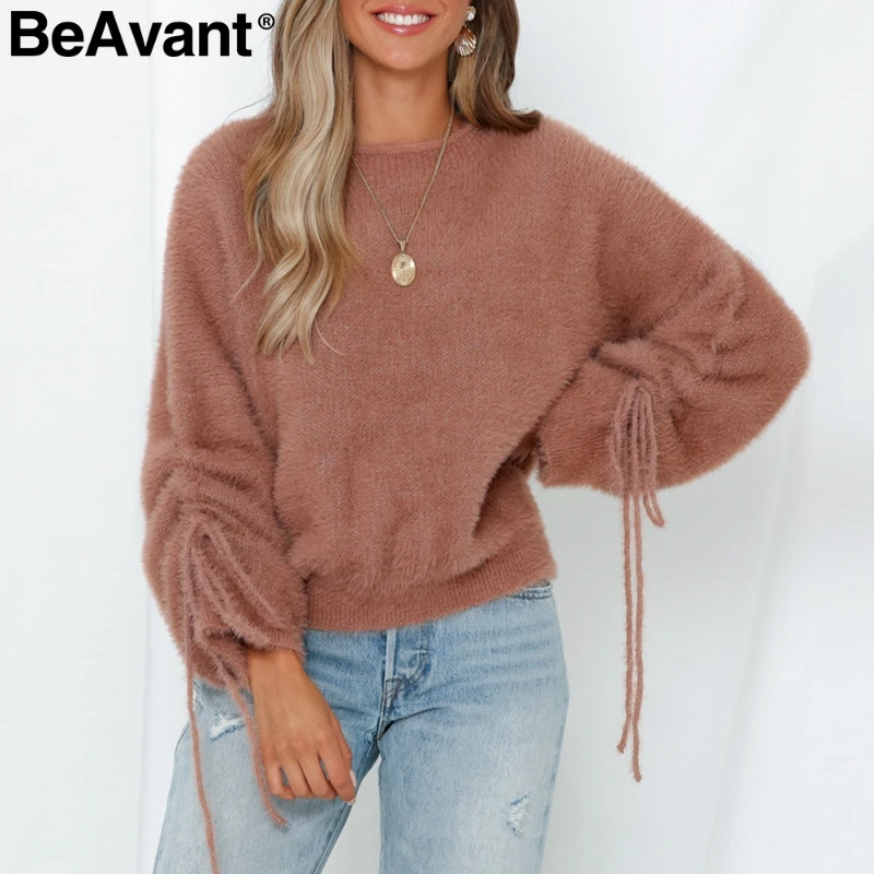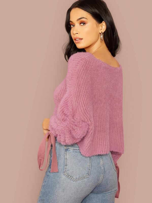 Drawstring pullover sweater Clearance, Drawstring Sleeves Fluffy Knit Pullover Clearance