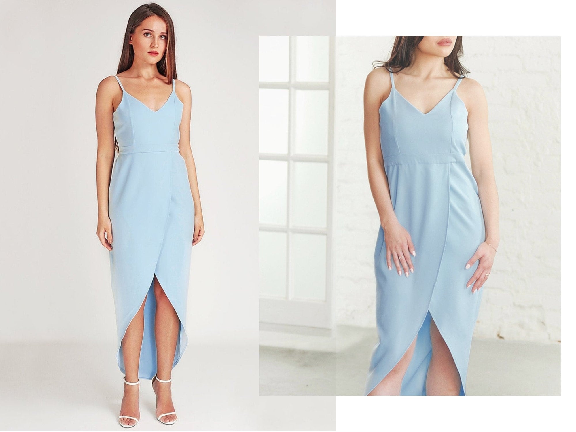 - Dusty blue midi bridesmaid dresses sale