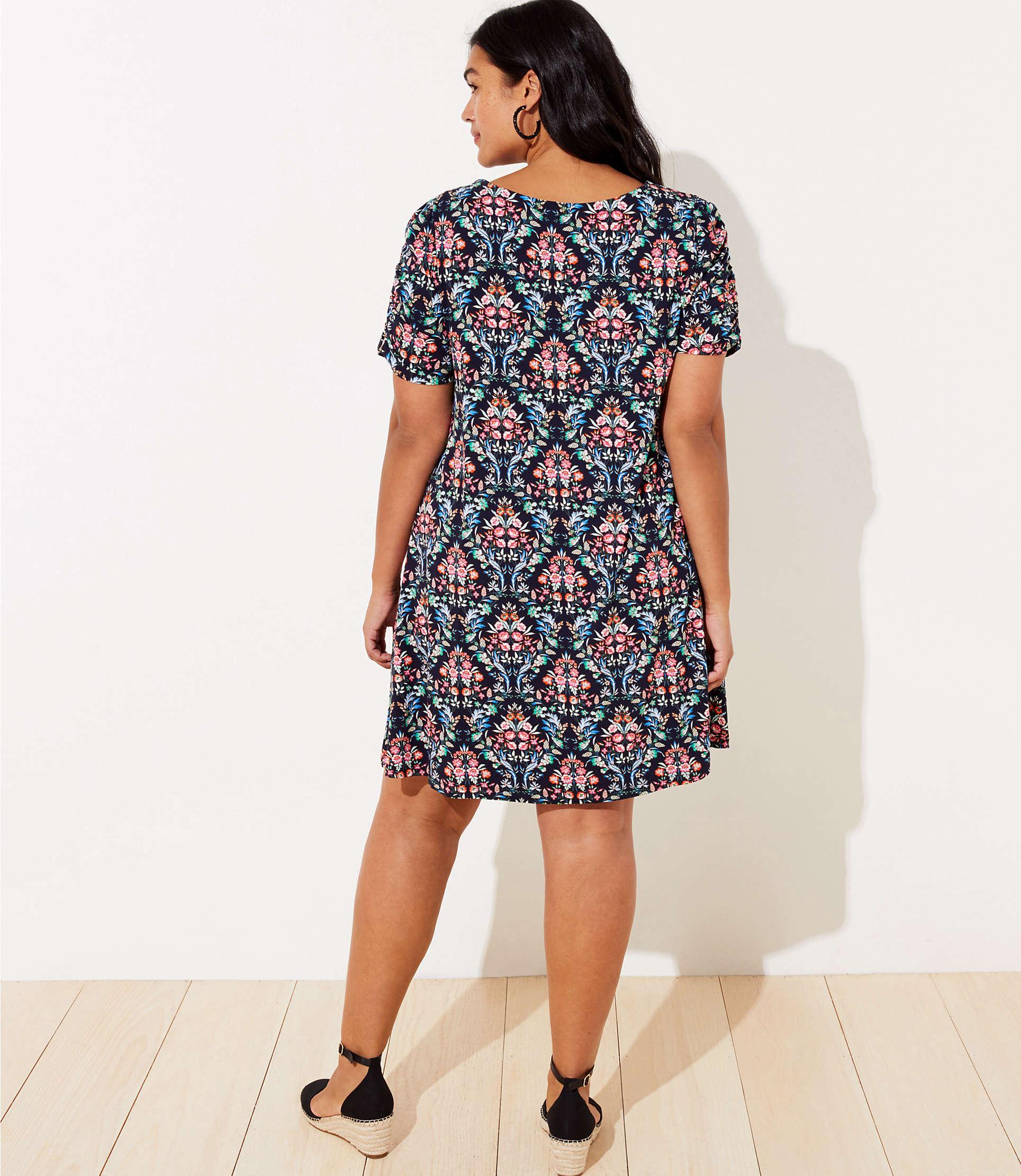 Floral trellis ruched sleeve swing dress Clearance, LOFT Plus Floral Trellis Ruched Sleeve Clearance
