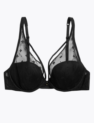 Embroidered mesh bra Clearance, Embroidered Mesh Underwired Plunge Bra Clearance