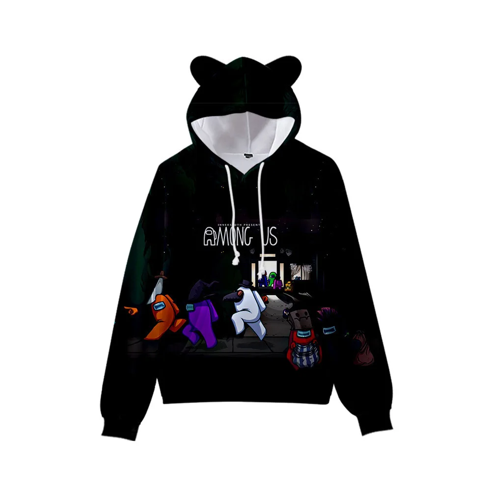 Mens cat ear hoodie Clearance, Custom Cartoon 3d Printing Streetwear Clearance