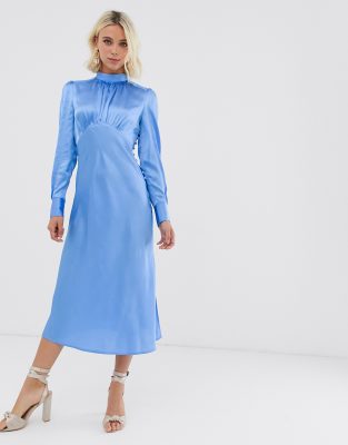 Blue satin dress asos Clearance, Ghost Bluebell satin dress in blue | ASOS Clearance