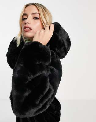Pimkie winterjacke schwarz Clearance, Pimkie – Flauschige Jacke mit Kapuze aus Kunstpelz in Schwarz | ASOS Clearance