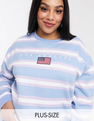 Daisy street oversized sweatshirt with los angeles embroidery in retro stripe Clearance, Daisy Street Plus oversized sweatshirt Clearance
