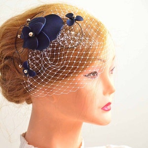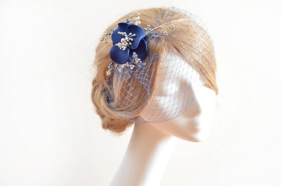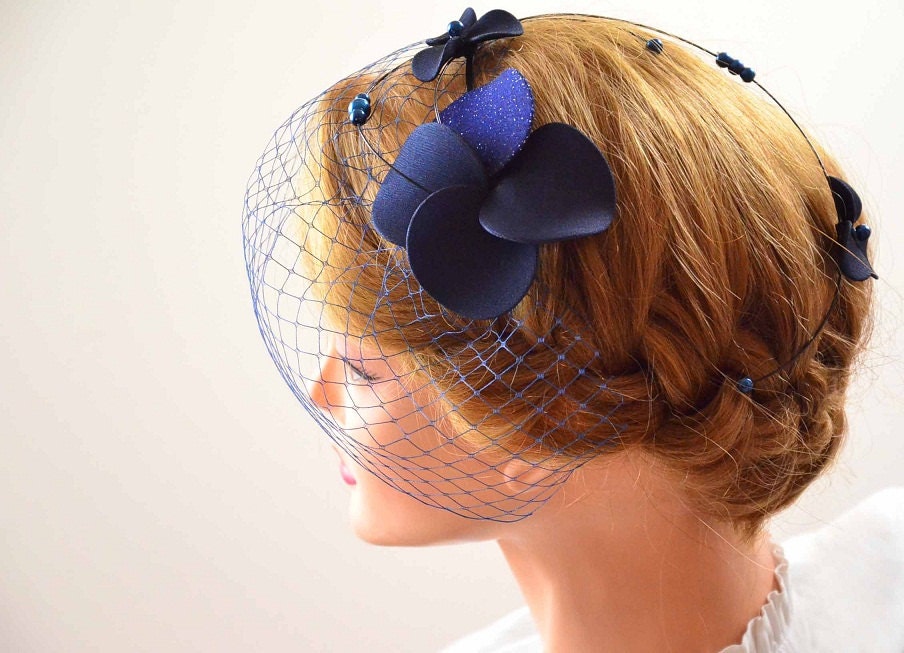 Navy birdcage veil Clearance, Flower Navy Blue Birdcage Veil | Etsy Clearance