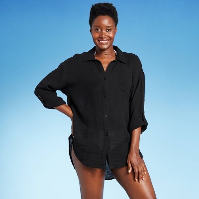 - Black button up cover up shop