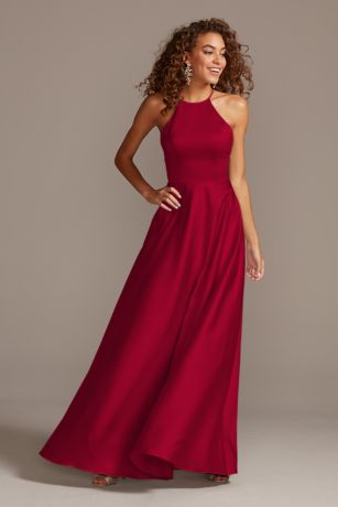 David's bridal satin bridesmaid Clearance, High-Neck Satin A-Line Bridesmaid Dress Clearance