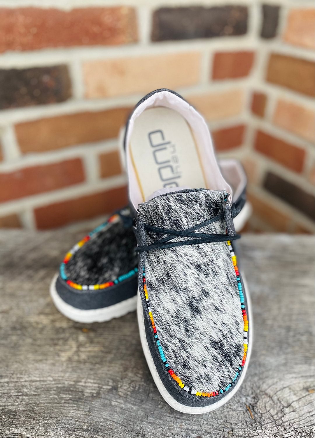 Cowhide hey dudes Clearance, Punchy Cowhide Hey Dudes – Neon Moon Clearance