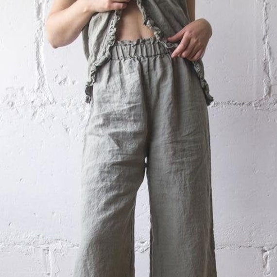 Linen ruffle pants Clearance, Linen Loose Pants for Women,Casual Wide Clearance