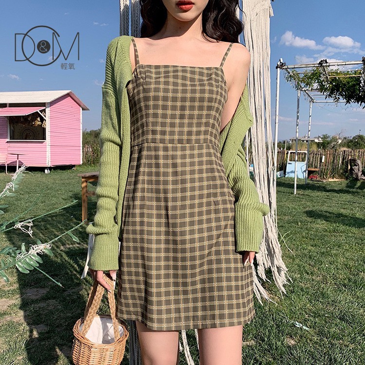 - Light green plaid dress free shipping
