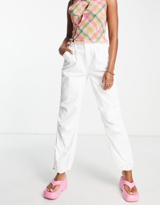 Bershka parachute pants weiß Clearance, Bershka Petite tie waist nylon cargo parachute pants in white Clearance